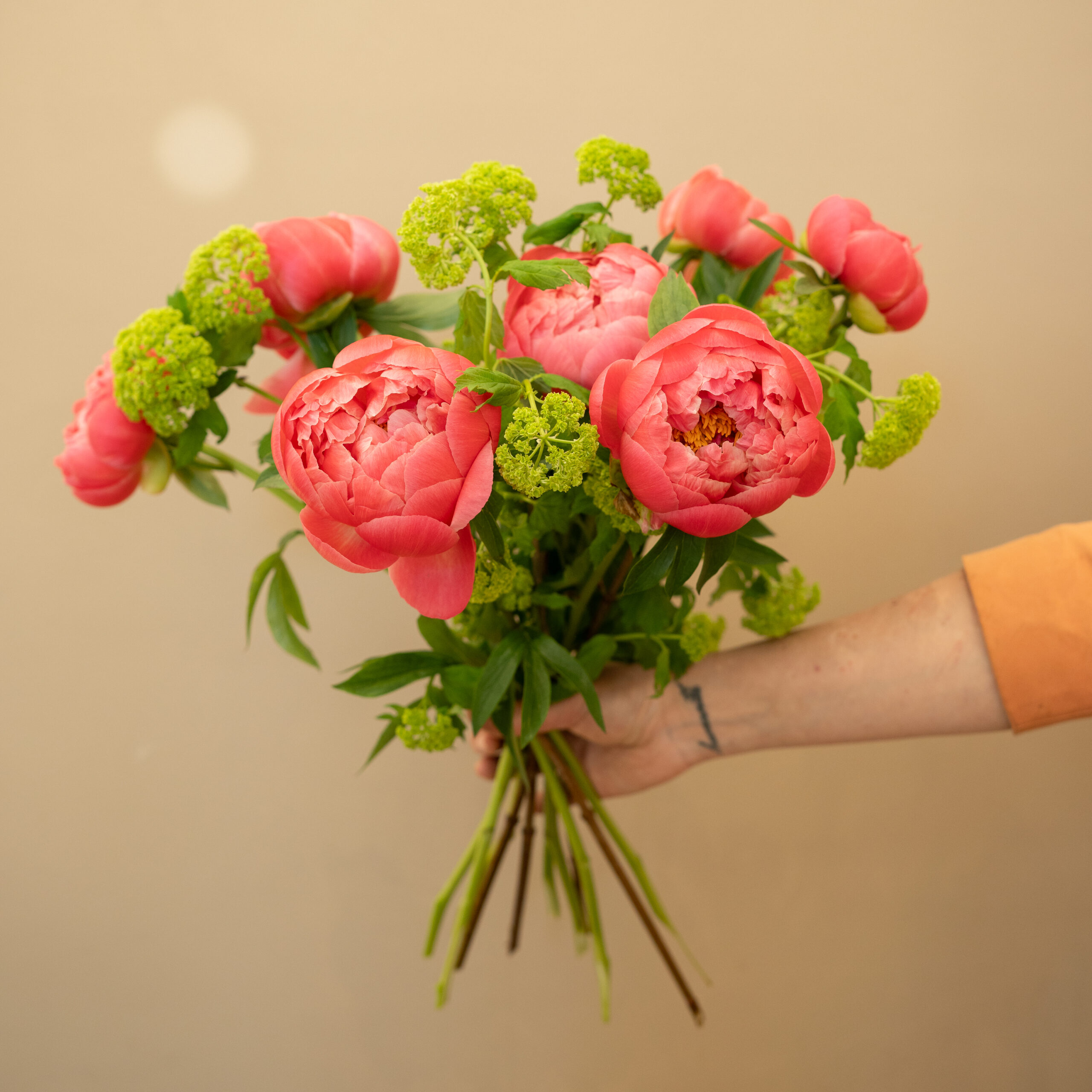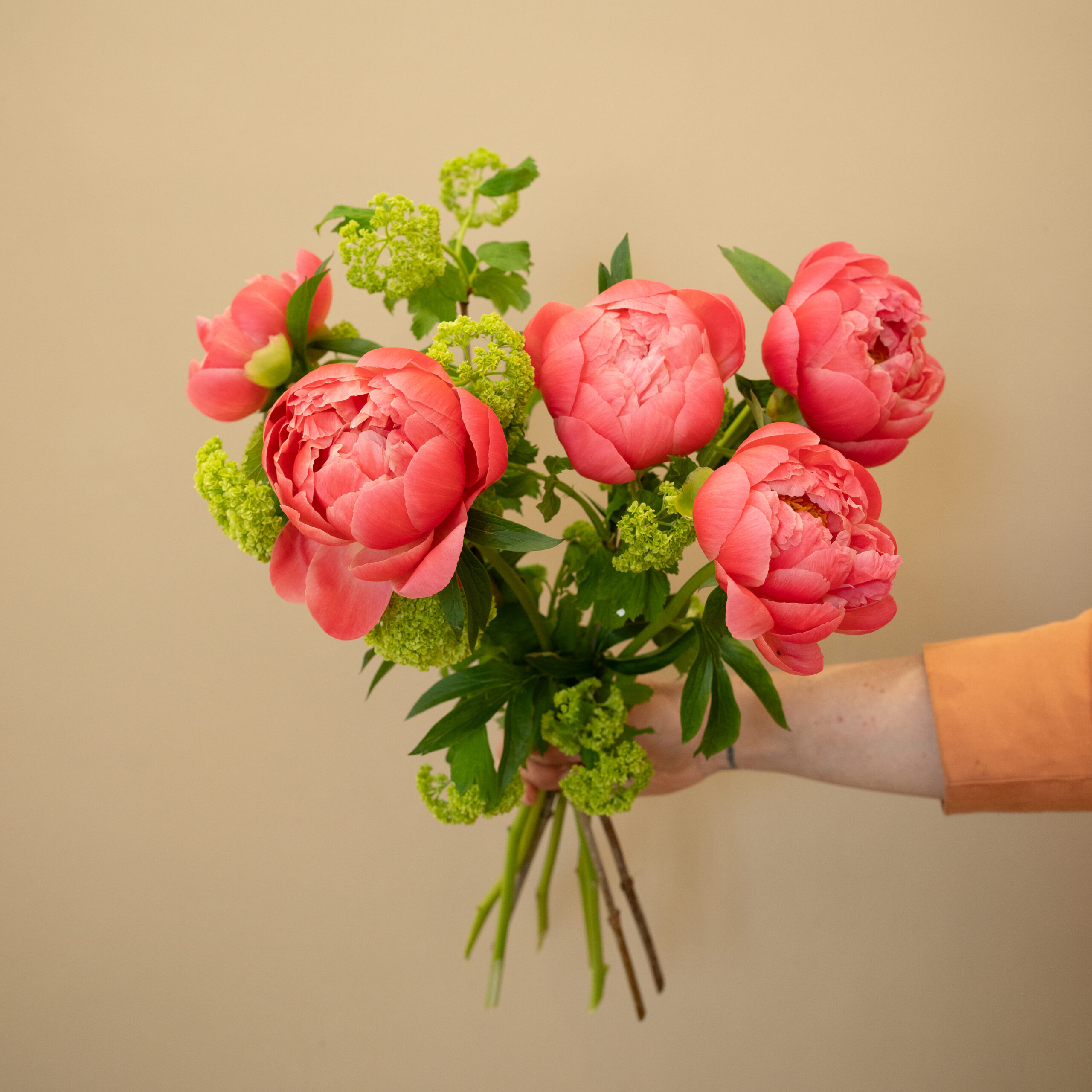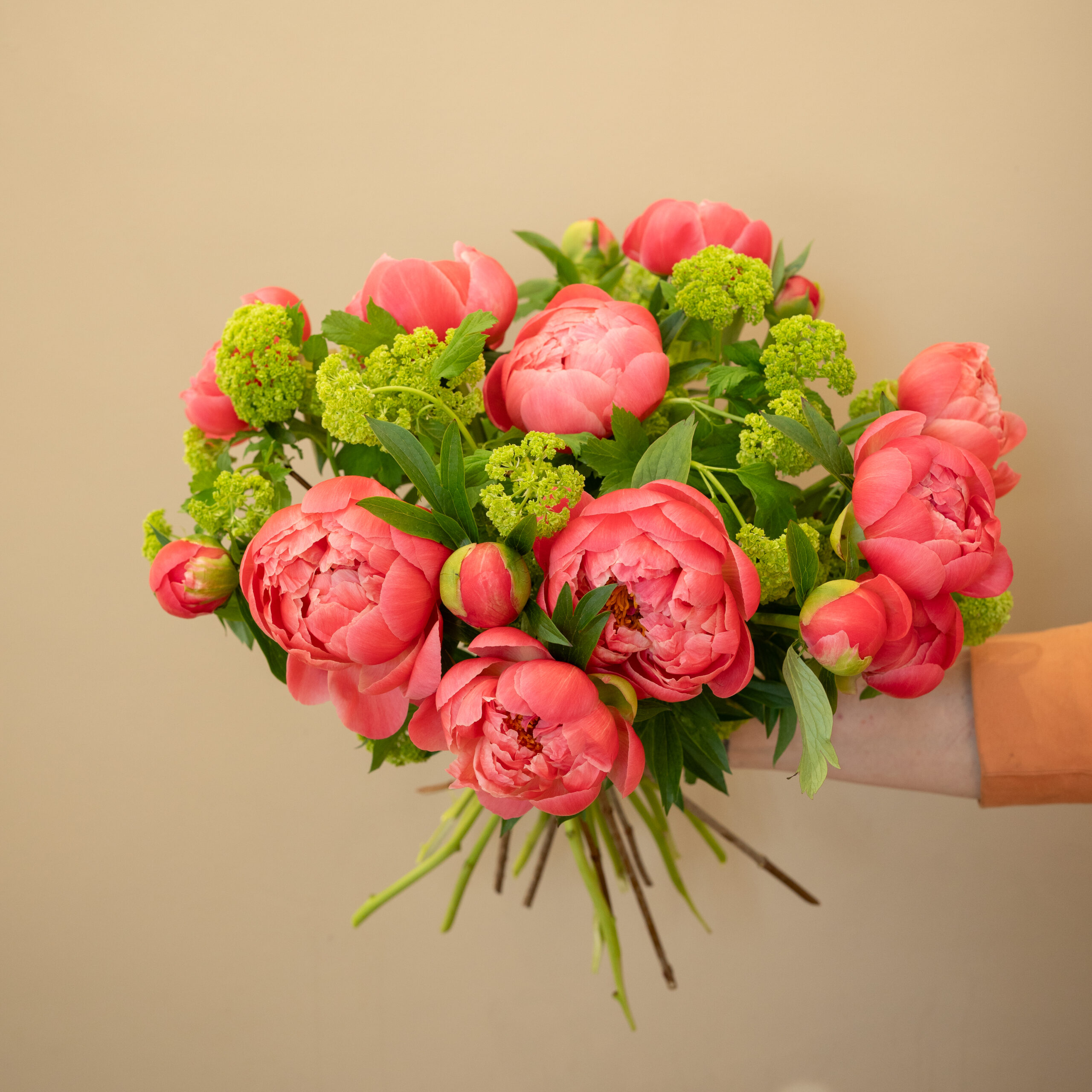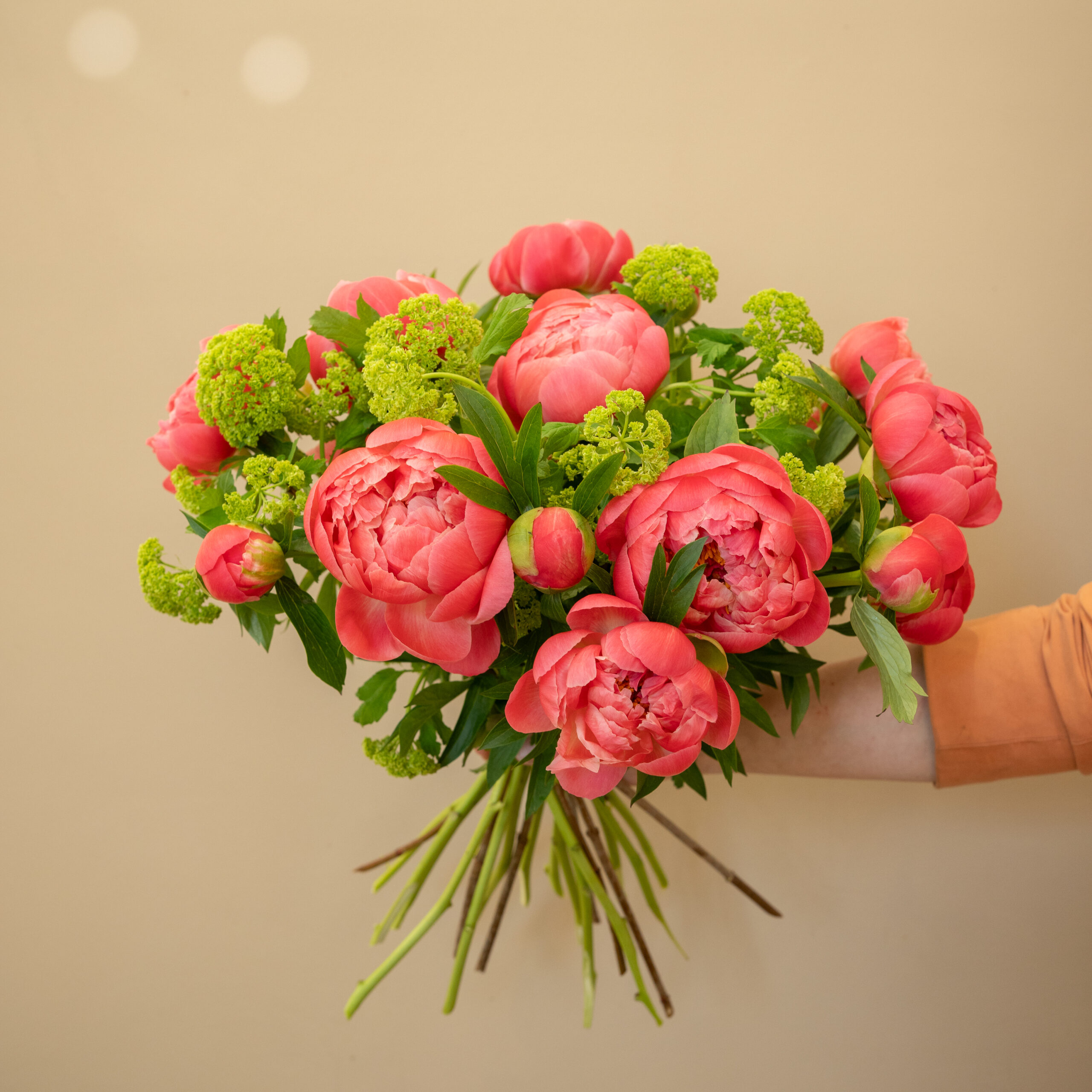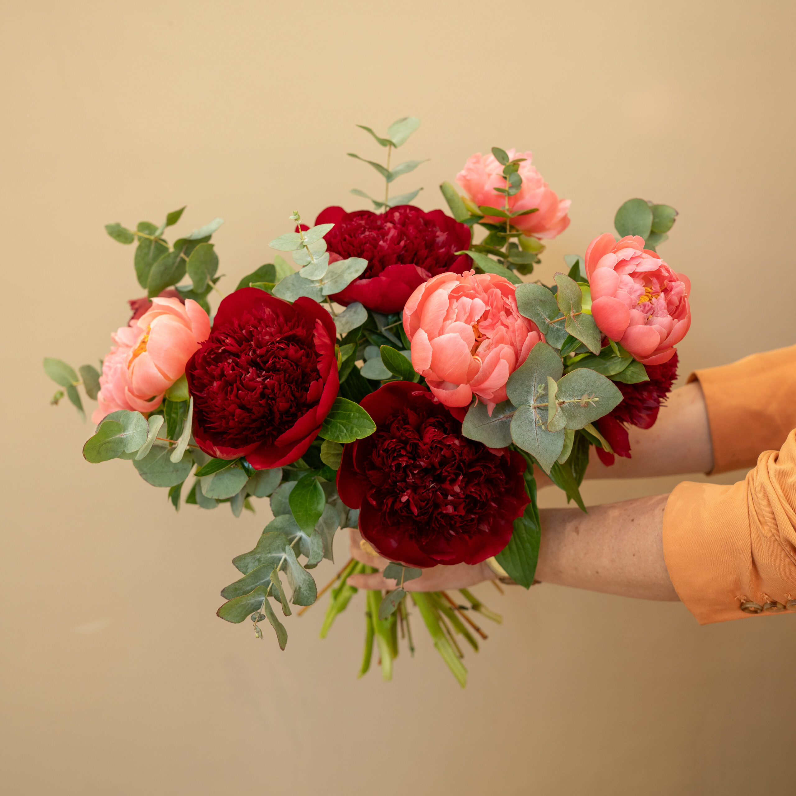 Bouquet de pivoines fraîches fait à la main, fleuriste Lyon 7.