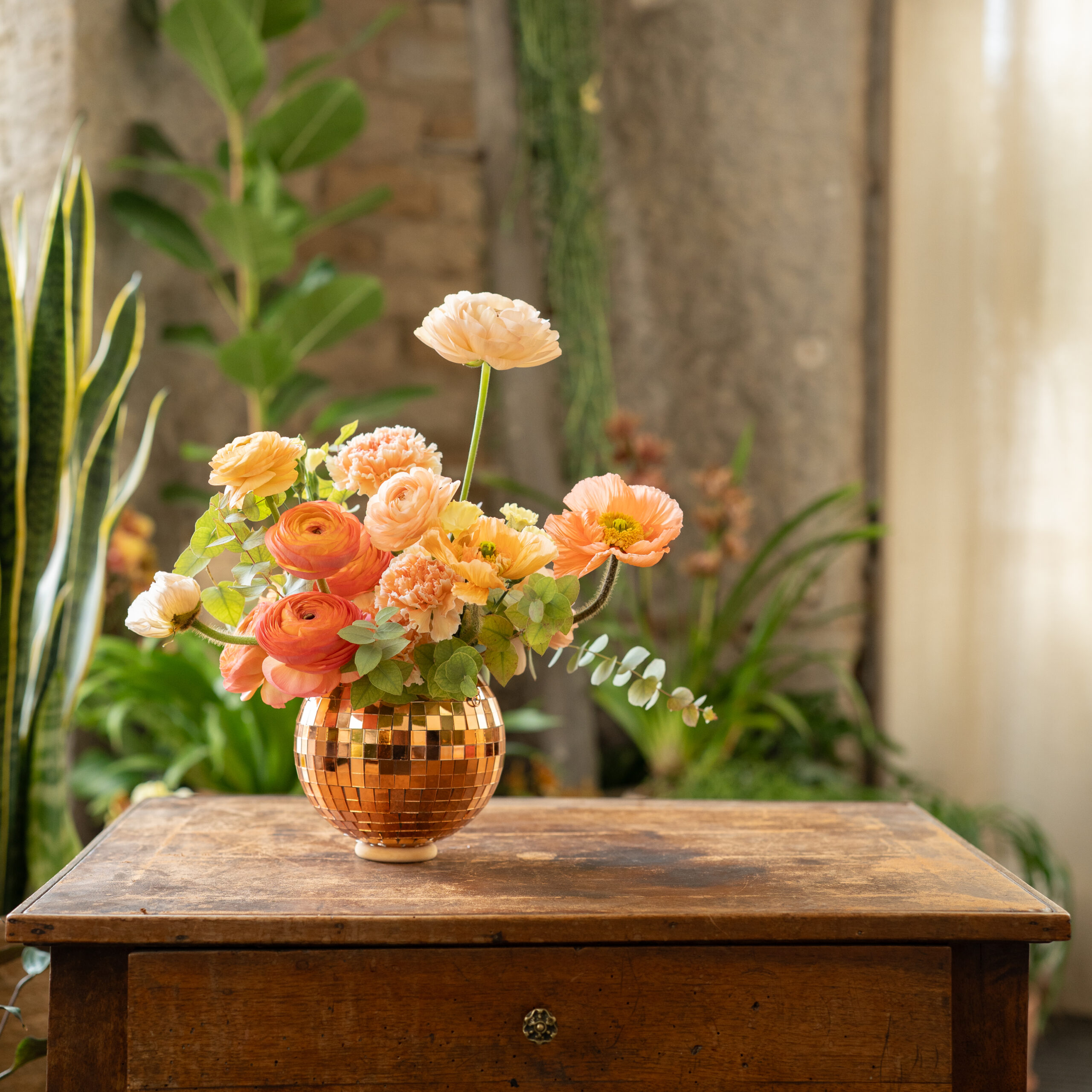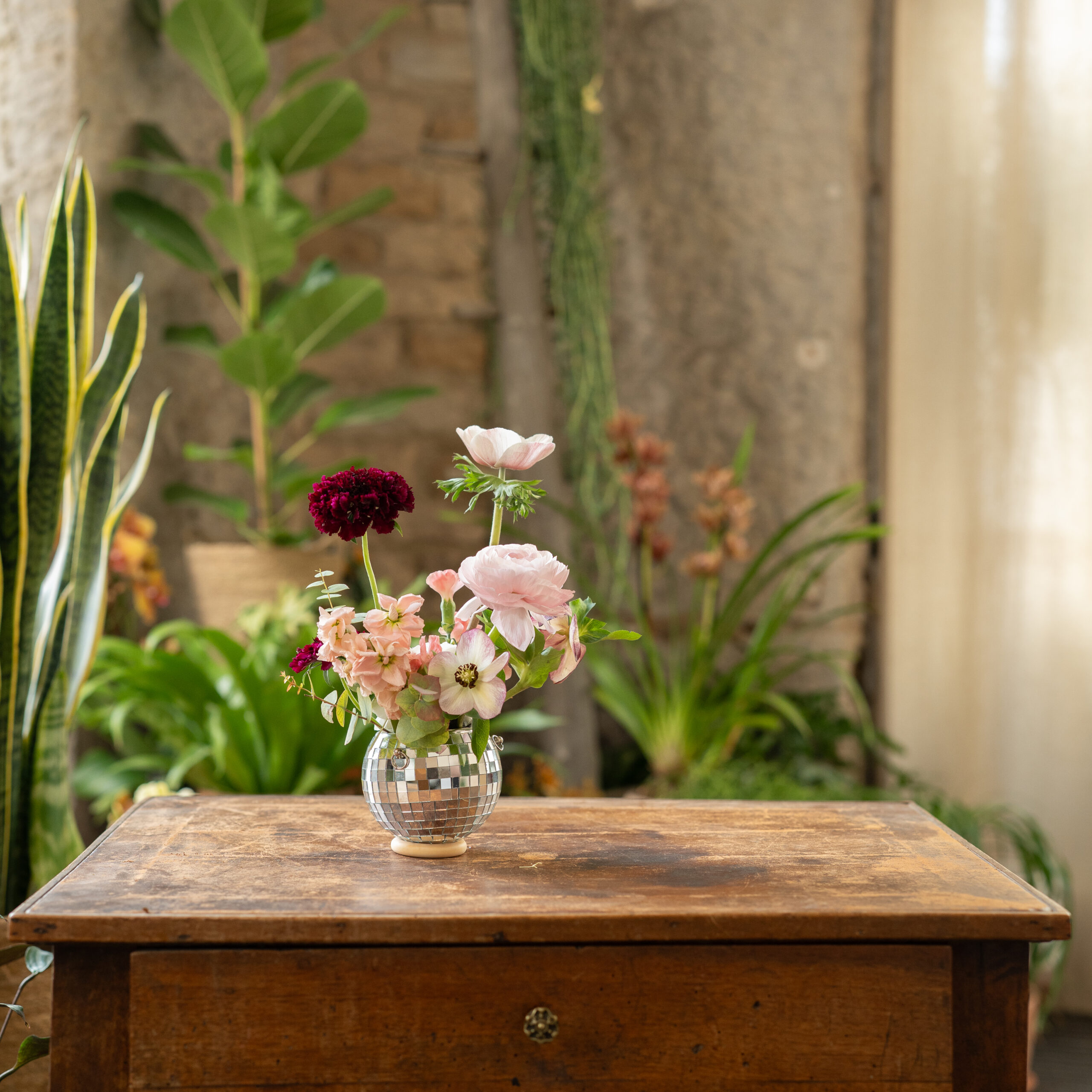 Une composition aux multiples reflets et secrets, pensée pour illuminer fleurs et se transformer ensuite en cache-pot.